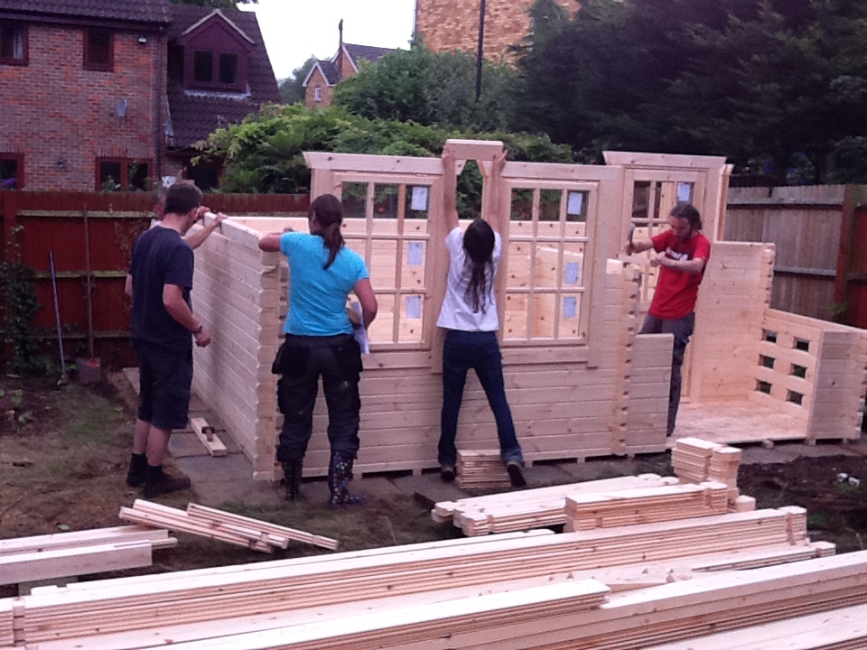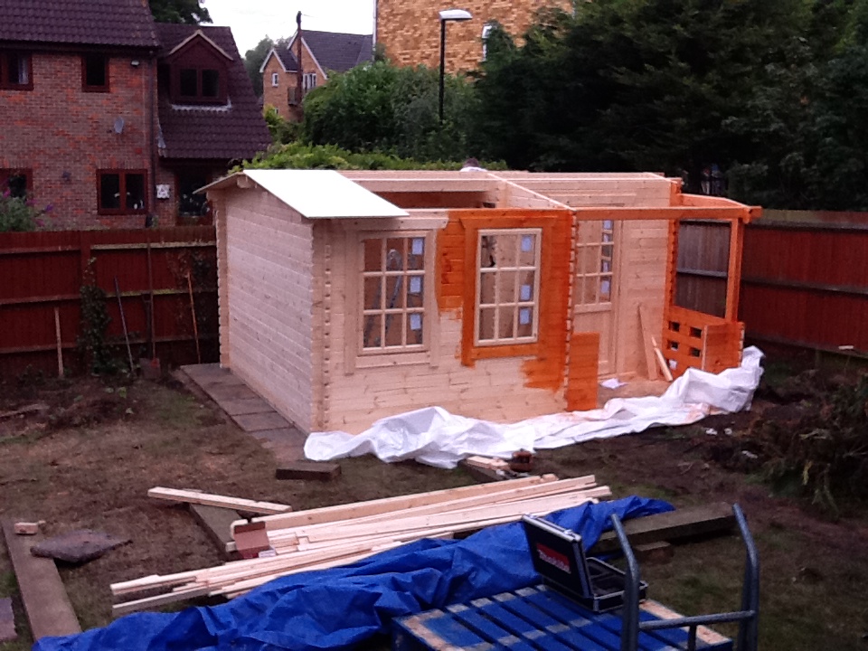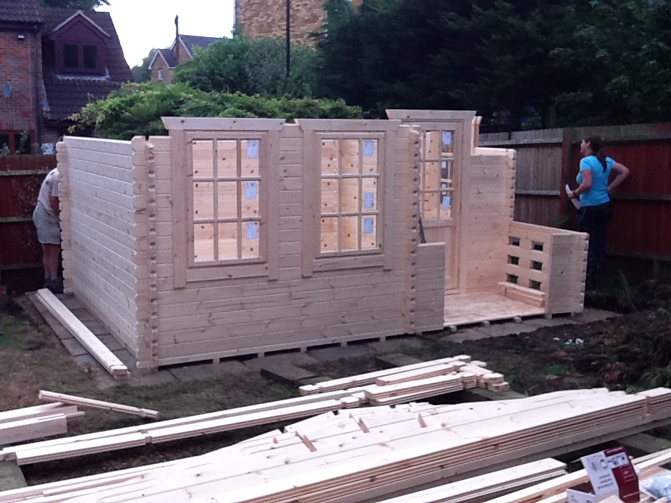 The website said that two people could build a log cabin in 2-3 hours. I asked the delivery driver about this and he said "Not one of these mate, I built one once and it took me 3 hours just to get to roof height". It took an hour and a half just to get all the parts into the garden. After another 4 and a half hours we had almost reached roof height when it suddenly poured down with rain for about 1 hour and we called it a night.