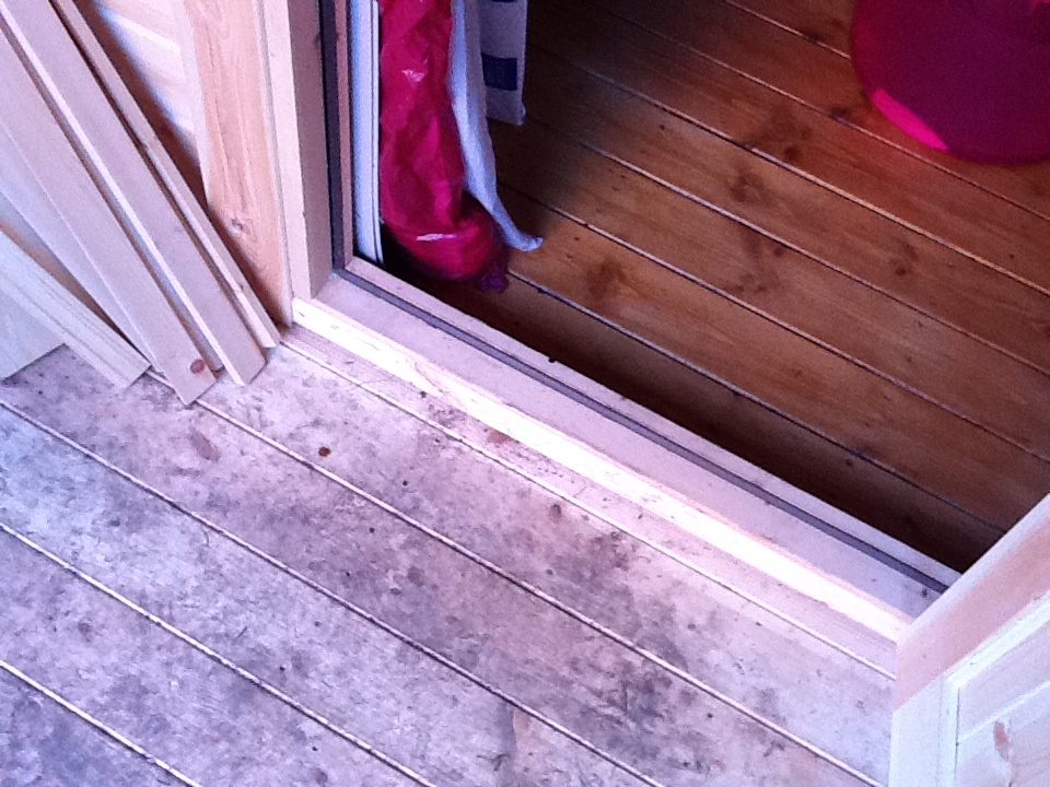 We finally got the felt on the roof two days later. The worst job was sanding all the muddy foot and paw prints off the floor inside before treating it.